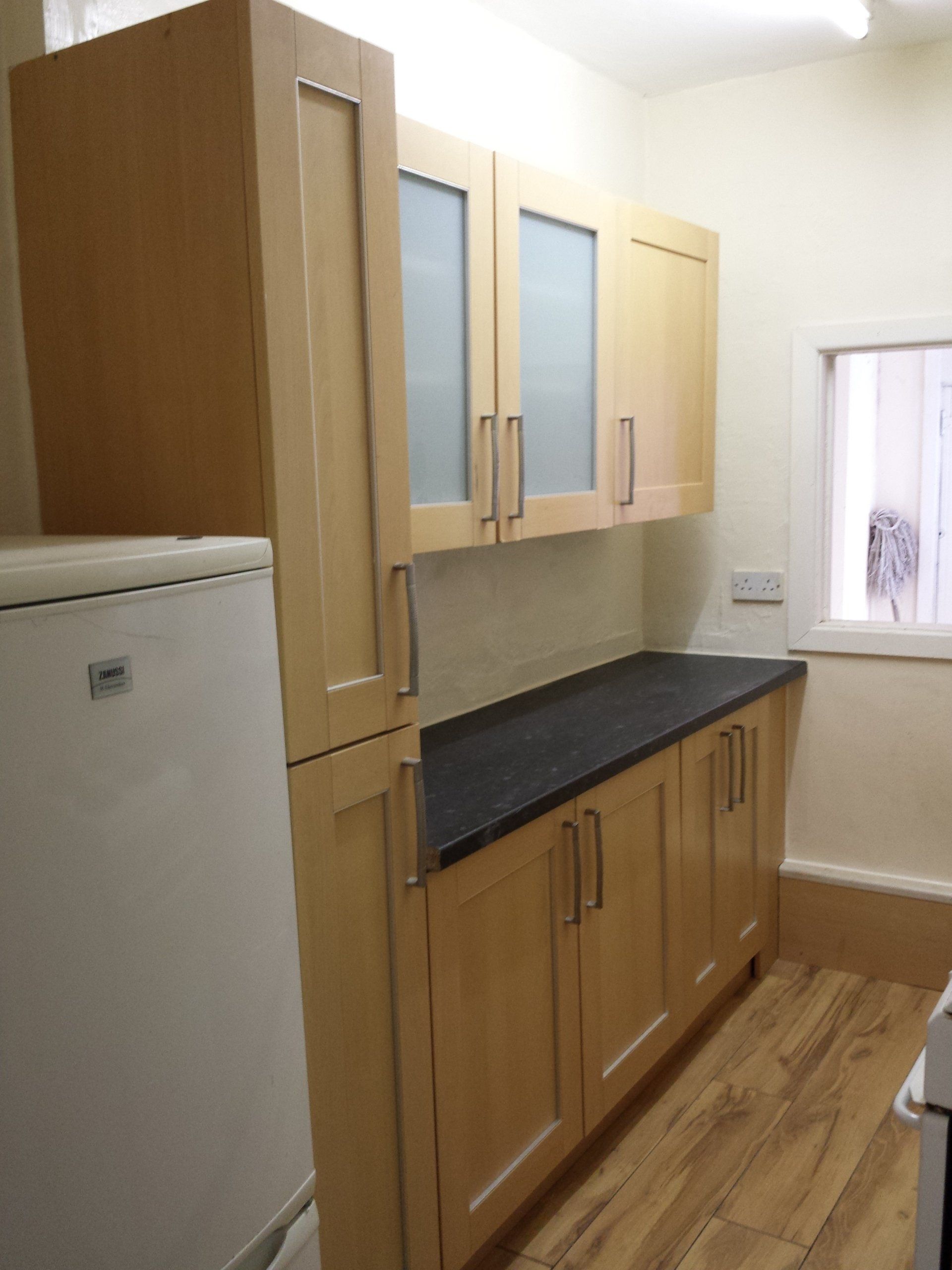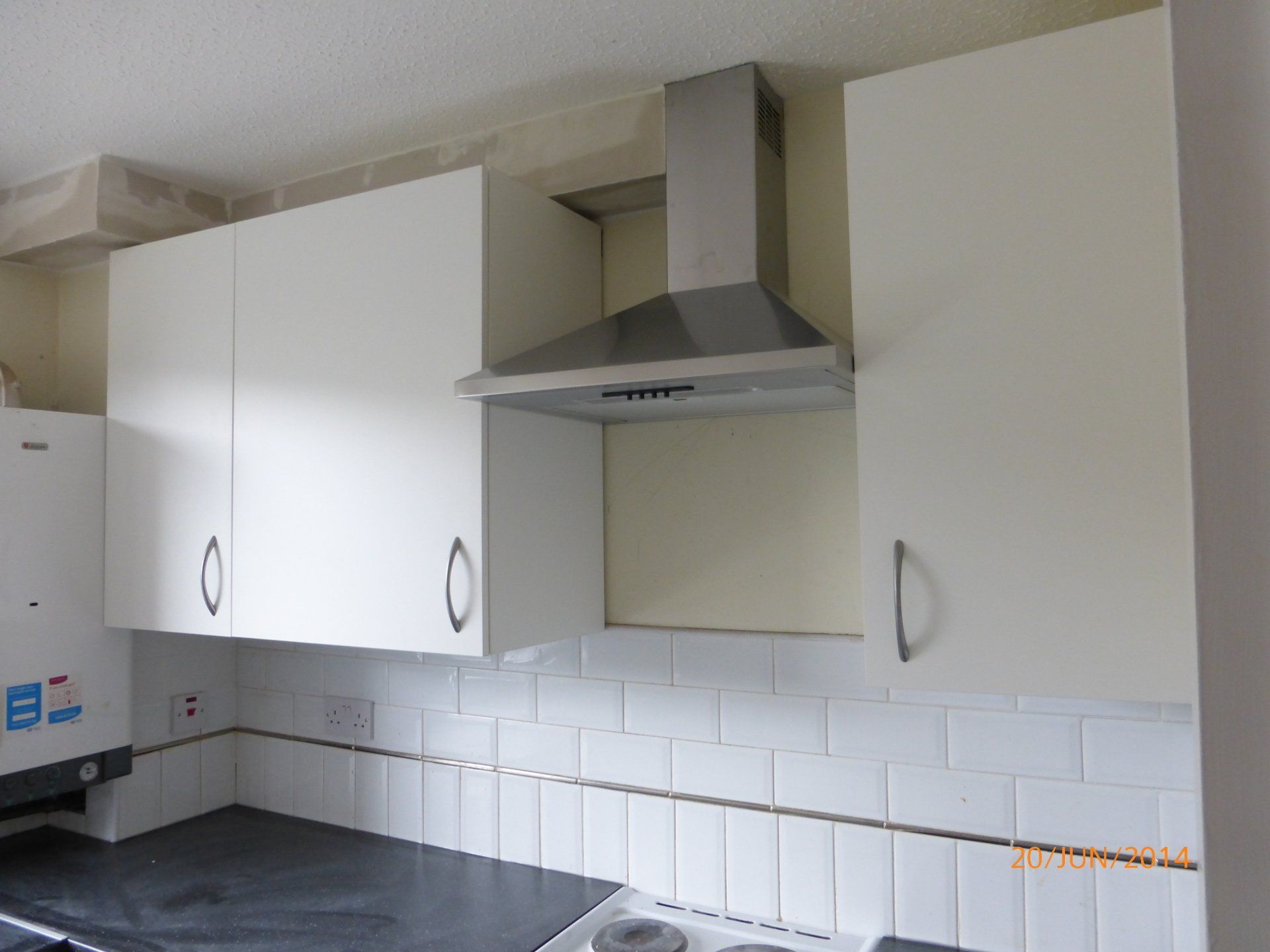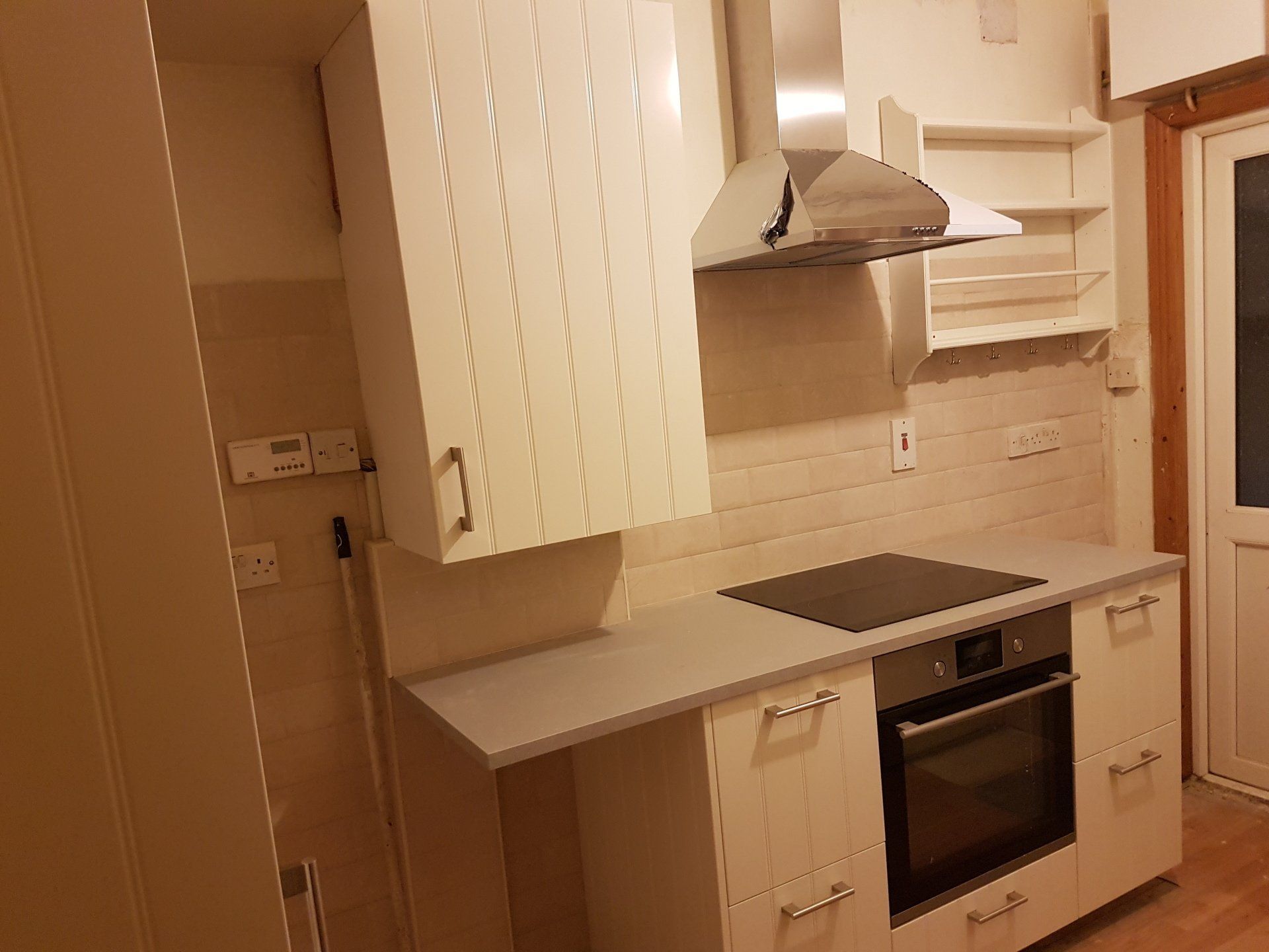 Cabinet doors, worktop and sink replacing. Painting sides of cabinets.
