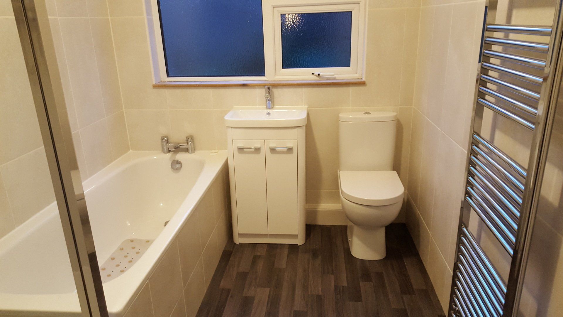 Walls and floor tiling.