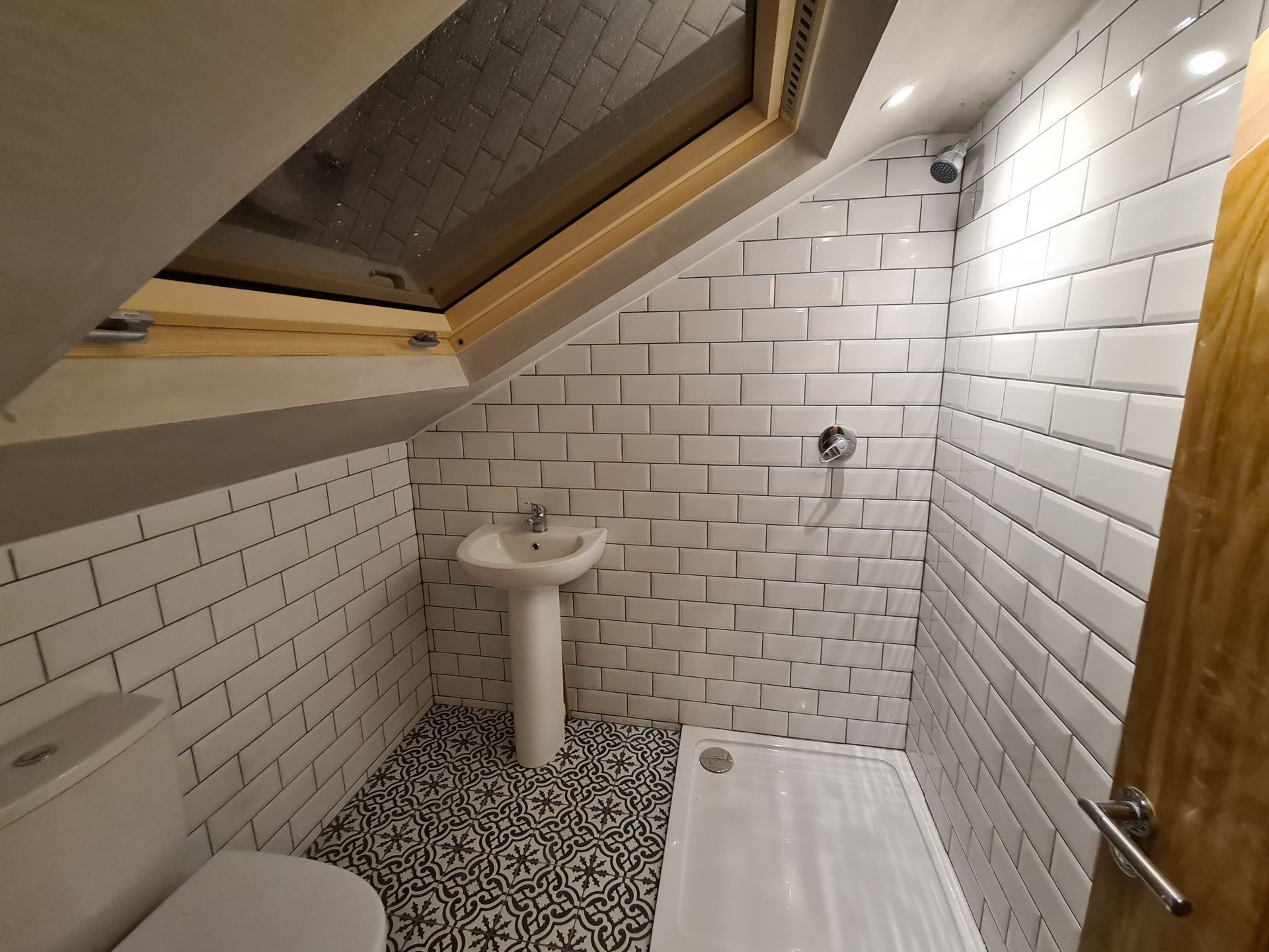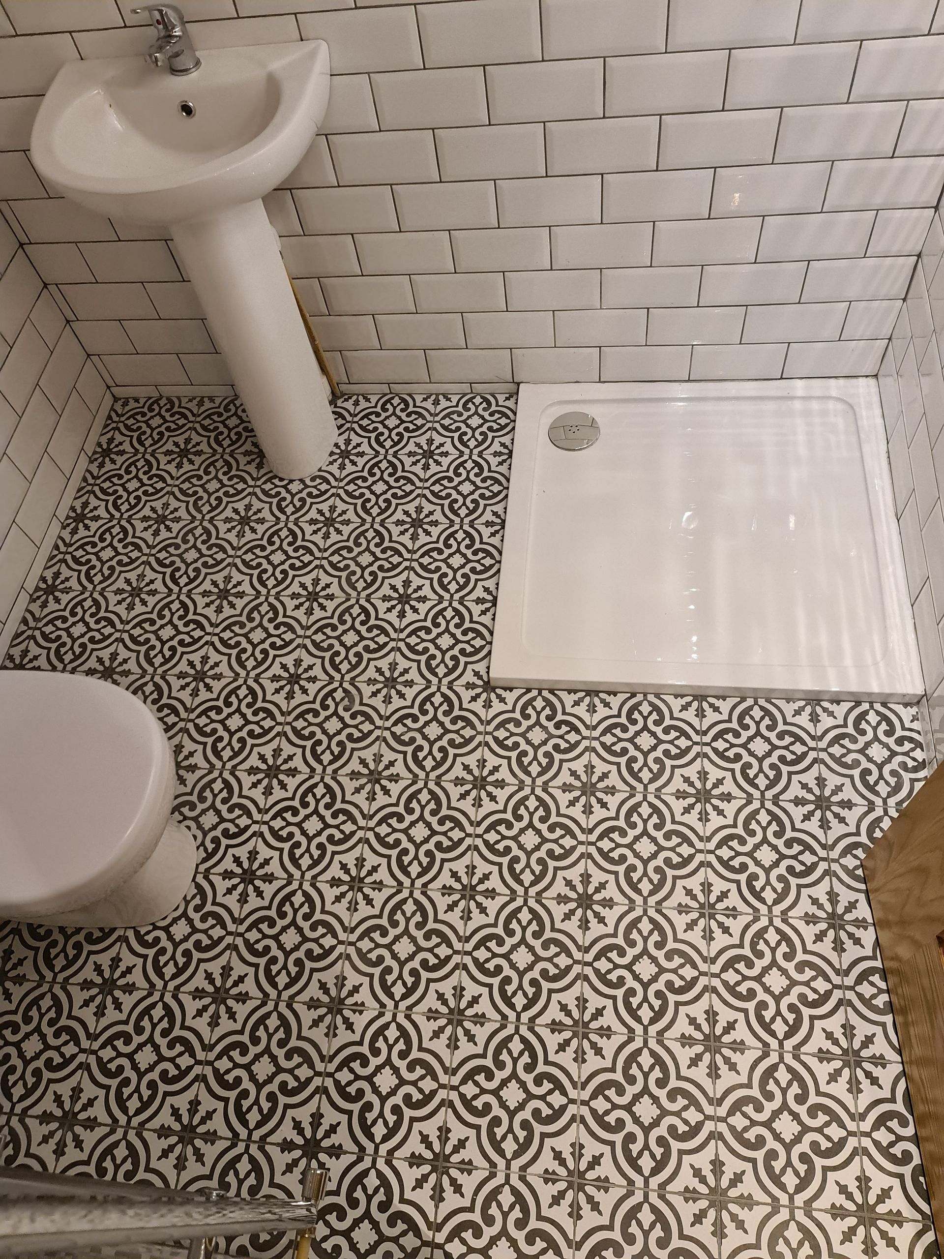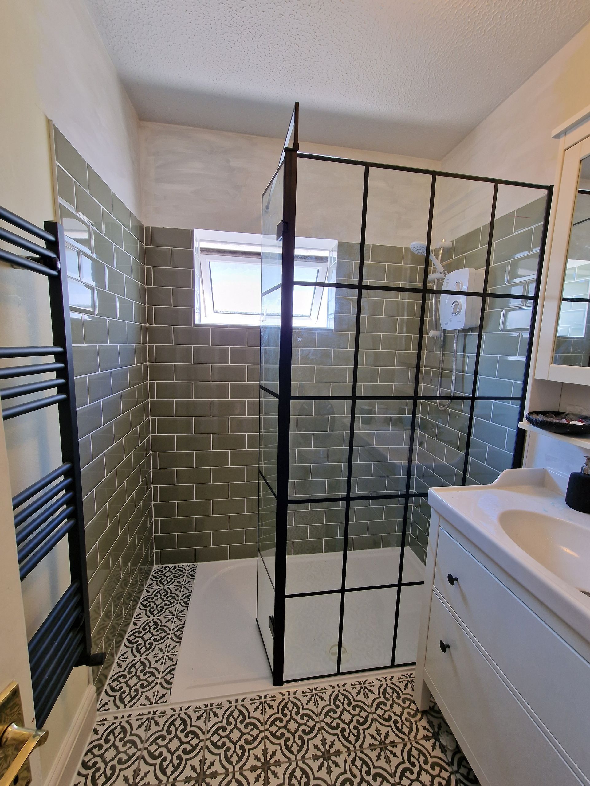 Shower area tiling.